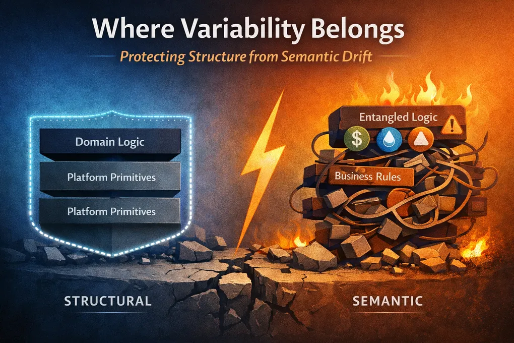 The issue is not variability itself. It is where variability is allowed to live. When designs place domain-specific logic in layers that were meant to remain general, complexity grows in the wrong place.